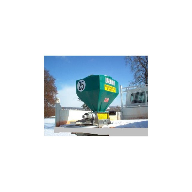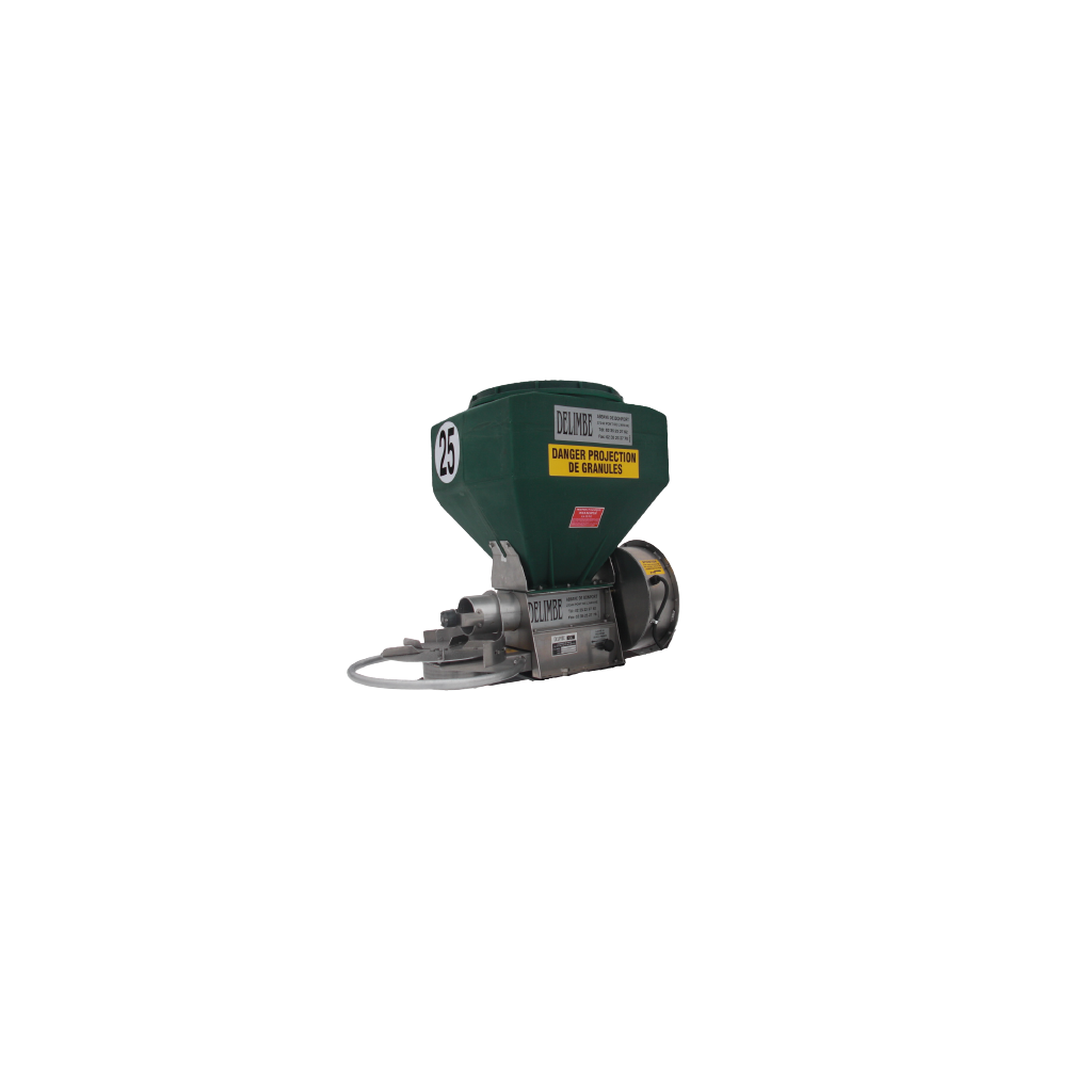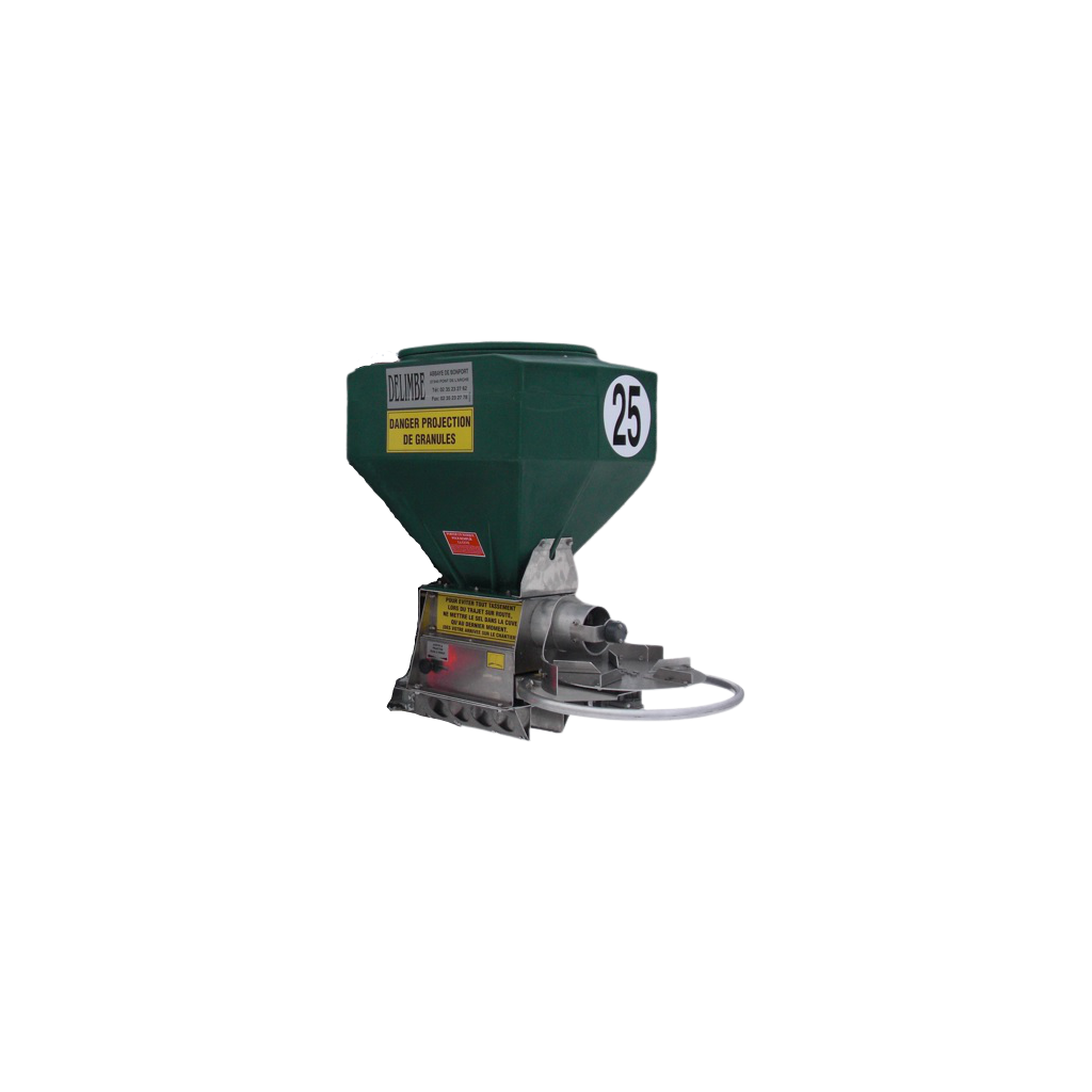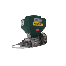 - Bandeja de distribución y tornillos sinfín operados por dos motores eléctricos de 12 voltios impermeables.