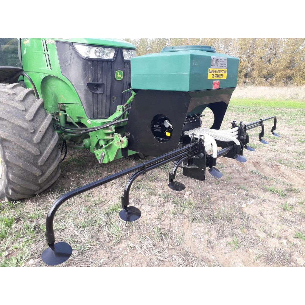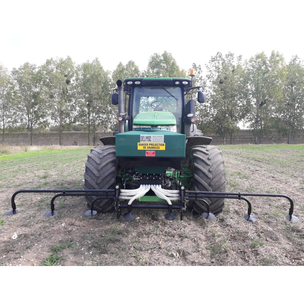 - Se utiliza para sembrar semillas pequeñas o grandes frente al tractor. Las semillas son enterradas por la máquina de labranza.