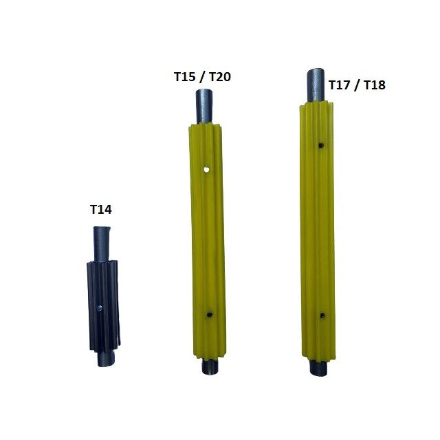 T14: 160 mm (parte plástica: 100 mm) T15/T20: 322 mm (parte plástica: 262 mm) T18/T17: 350 mm (parte plástica: 290 mm) |