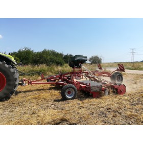 - Sur un déchaumeur : Les graines doivent être dispersées à la volée avant le rouleau de façon à ce que la projection de terre de celui-ci recouvre le semis.