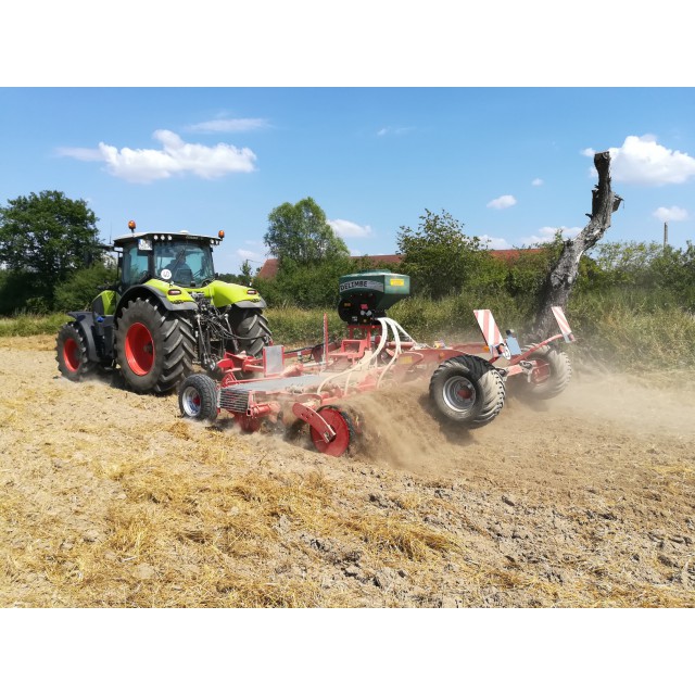 - Peut être placé sur tous types d'outils de travail du sol ou herses pour régénération de prairie.