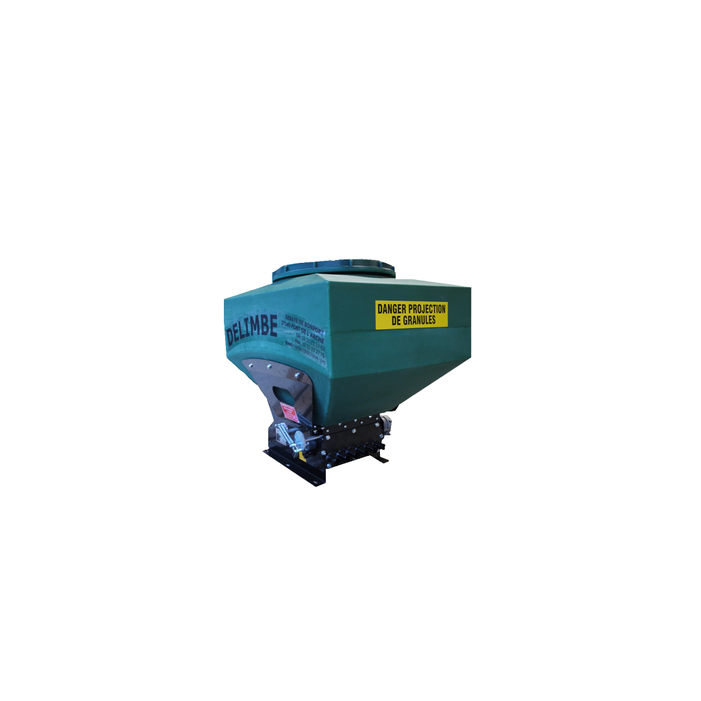 - Un moto-réducteur électrique entraîne la cannelure pour la distribution des graines. On agit sur la vitesse de rotation de la cannelure pour réguler le débit (de 5 à 350 kgs/ heure).