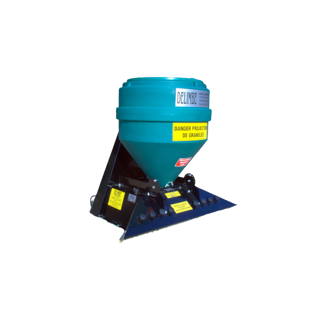 - Projection centrifuge des petites graines, répartition par volet réglable en hauteur avec ailettes.