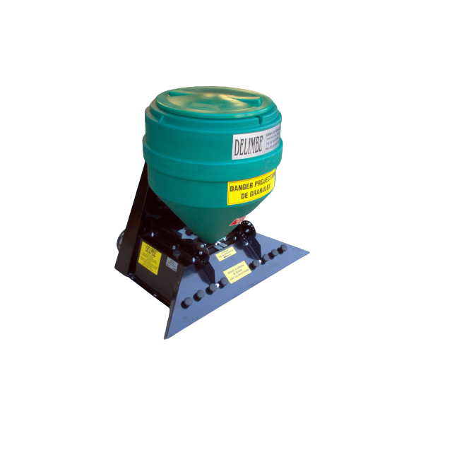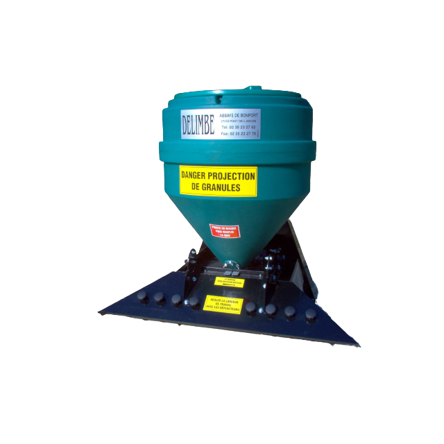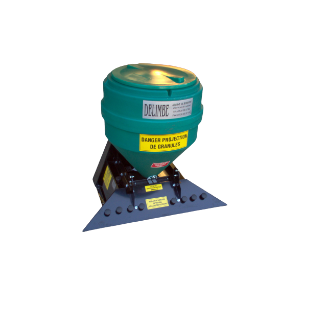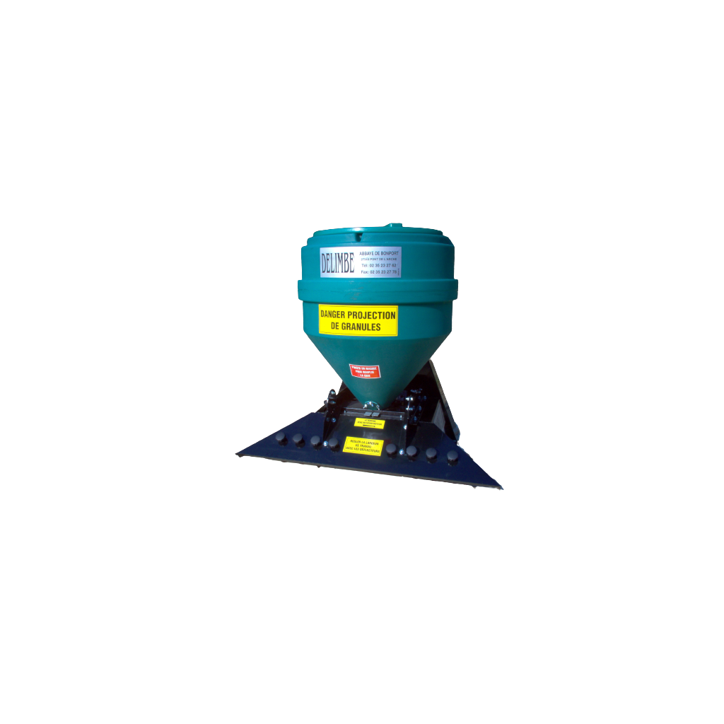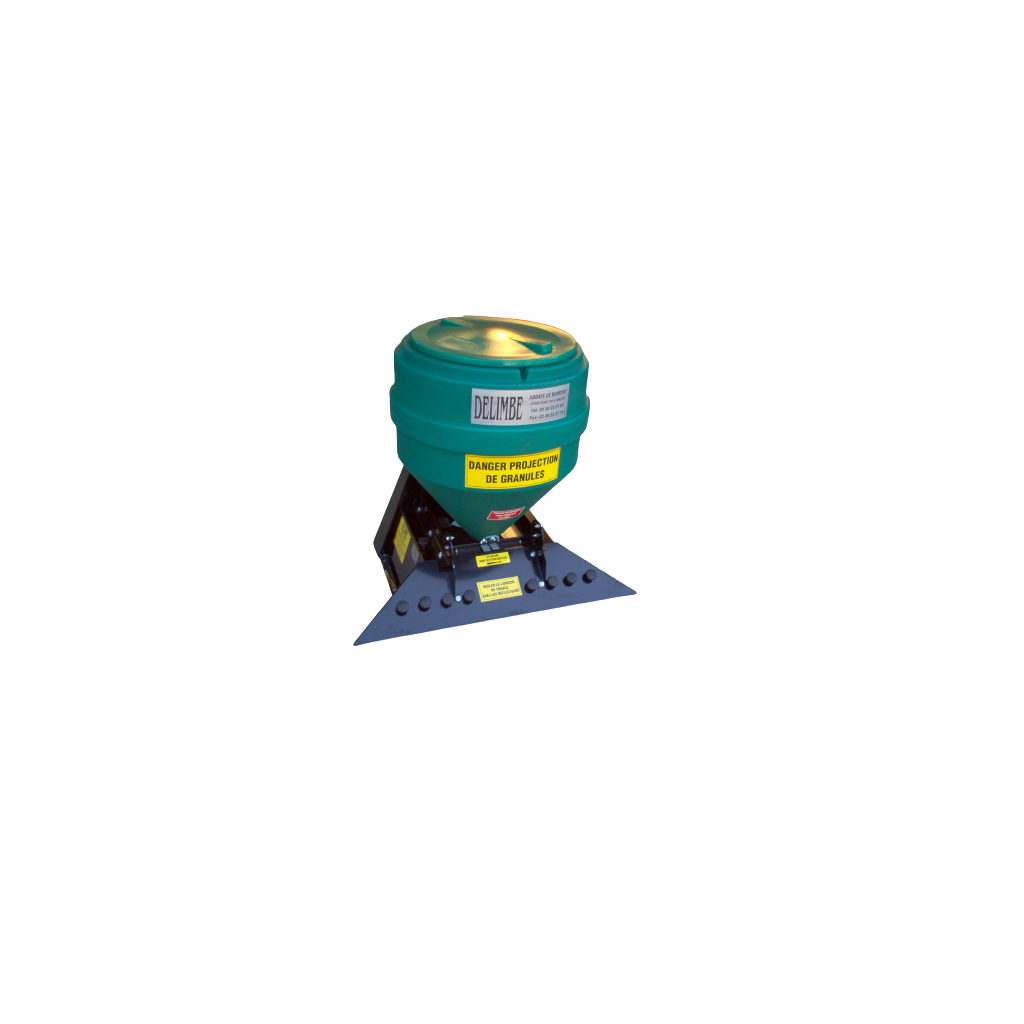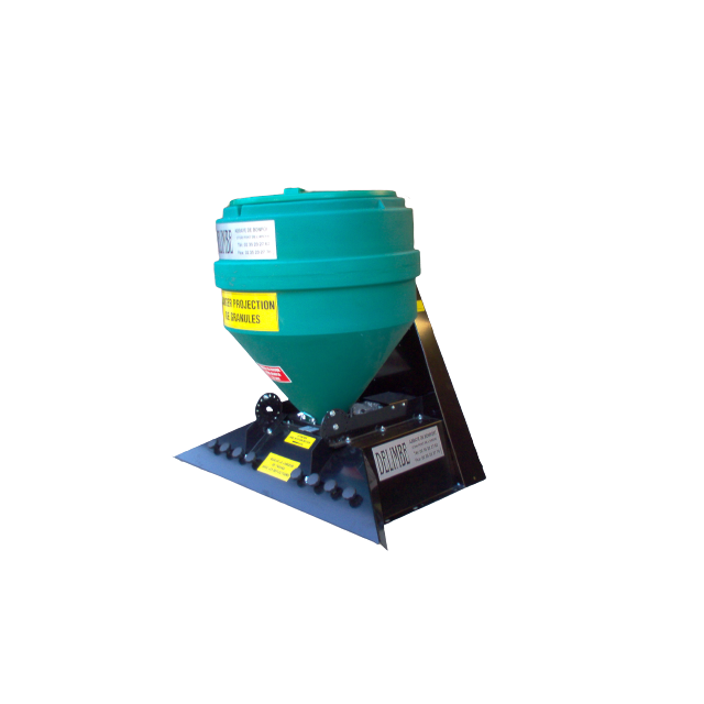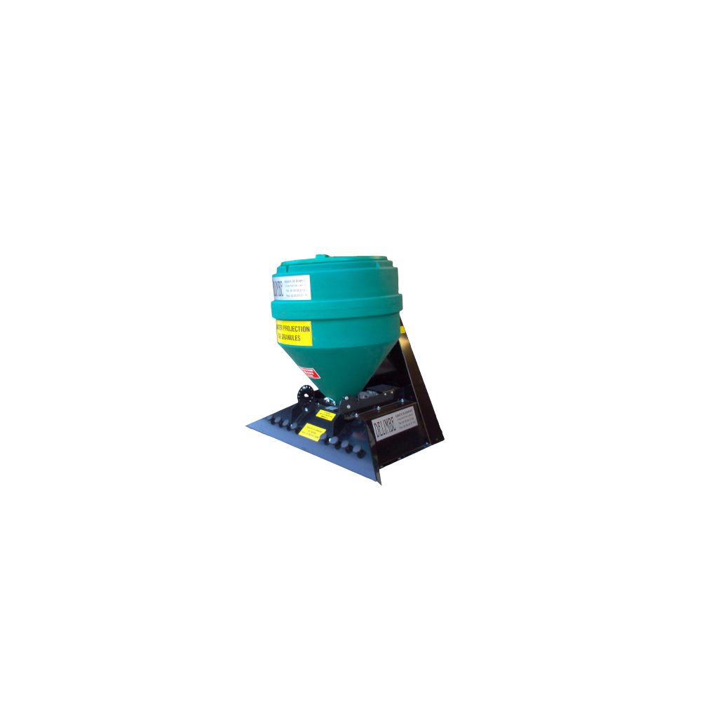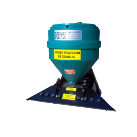 - Il fonctionne avec un moteur pour faire tourner le plateau d'épandage et un kit vérin pour l'ouverture et fermeture de la trappe.
