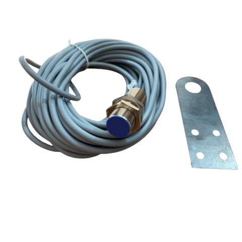 - Disposer le capteur avec un plot métallique à l'extrémité du rouleau, de la roue de l'outil ou d'un tracteur, du dos d'un disque, etc (un élément tournant). Il doit être en position statique. On doit positionner un objet métallique en rotation à environs 5mm à 10mm du capteur, comme un boulon par exemple. Le diamètre de la roue n'est pas nécessaire au calcul du débit, car le DPA fonctionne grâce à la fréquence de rotation.
