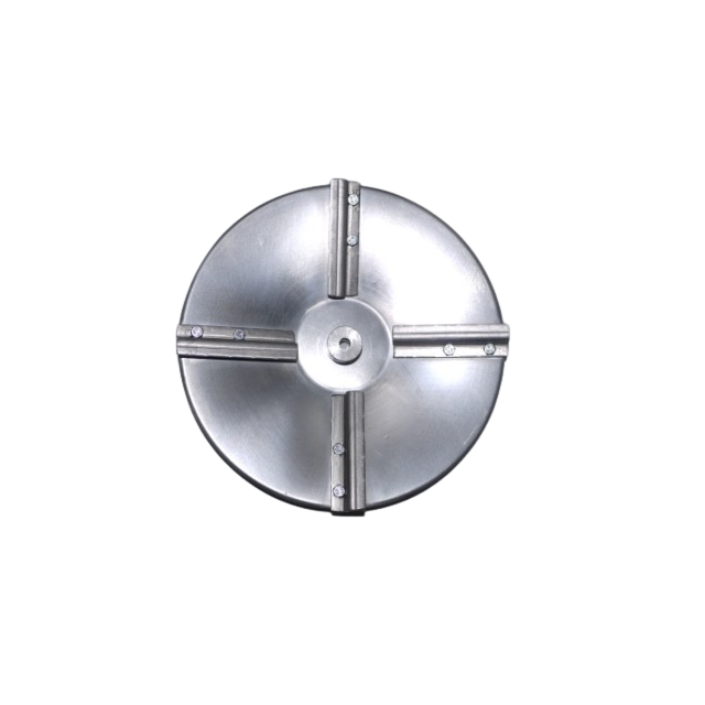 - Simple plateau d'épandage aluminium pour largeur 24 mètres fixe diamètre 230 mm avec perçage central diamètre 8 mm. Fourni avec ses ailettes et son moyeu.